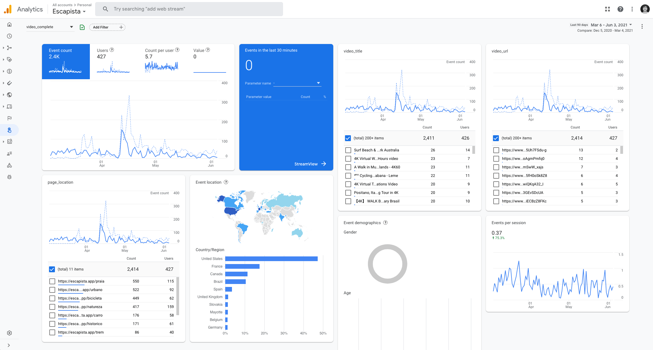 To measure the quantitative metrics I’ve implemented custom events in Google Analytics, and this is how the dashboard looks like.
